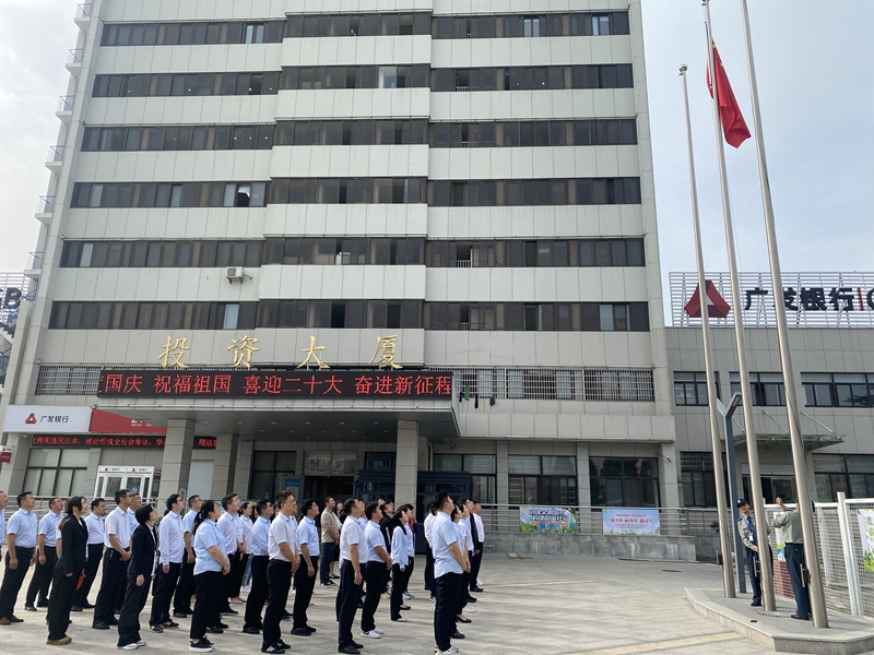 同升國旗、同唱國歌。9月30日上午,市礦投集團(tuán)聯(lián)合市文旅集團(tuán)、市揚子工投集團(tuán)、市擔(dān)保集團(tuán)在投資大廈舉行升旗儀式,全體人員同唱國歌,抒發(fā)愛國情懷,表達(dá)對祖國的美好祝福。
