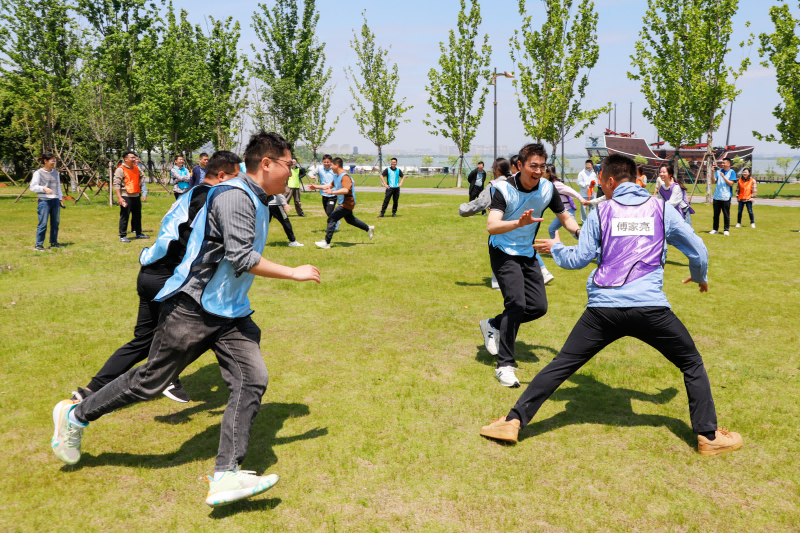撕名牌大戰(zhàn)。在寬闊的草坪上,參賽選手們相互追逐,手腳并用撕下對手背后的名牌。現(xiàn)場成功撕下名牌的歡呼聲、加油鼓勁的吶喊聲此起彼伏,展現(xiàn)了參賽隊員的頑強拼搏精神和積極進(jìn)取的斗志。