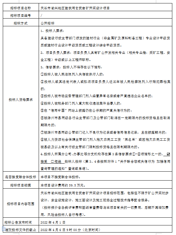 天長市諭興地區(qū)建筑用玄武巖礦開采設計項目招標公告